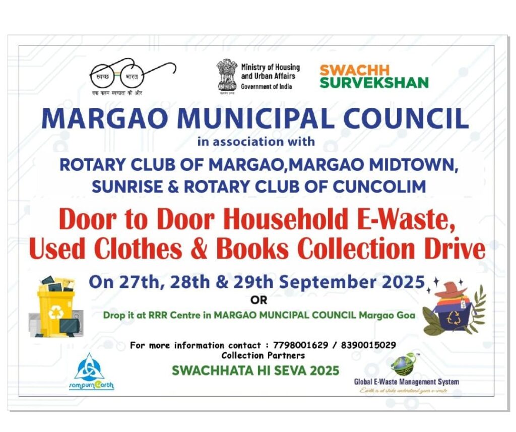 Margao Muncipal council waste Door to Door Household E-waste, Used Cloths & Books Collection Drive